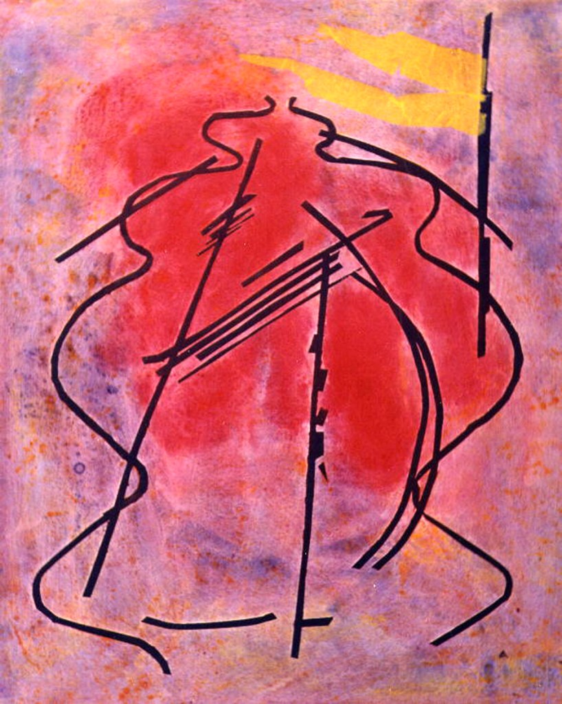 Ambrosio Paolo, Sestetto, 1991, 0515, T.mista su tela +carta igienica cm.100×80